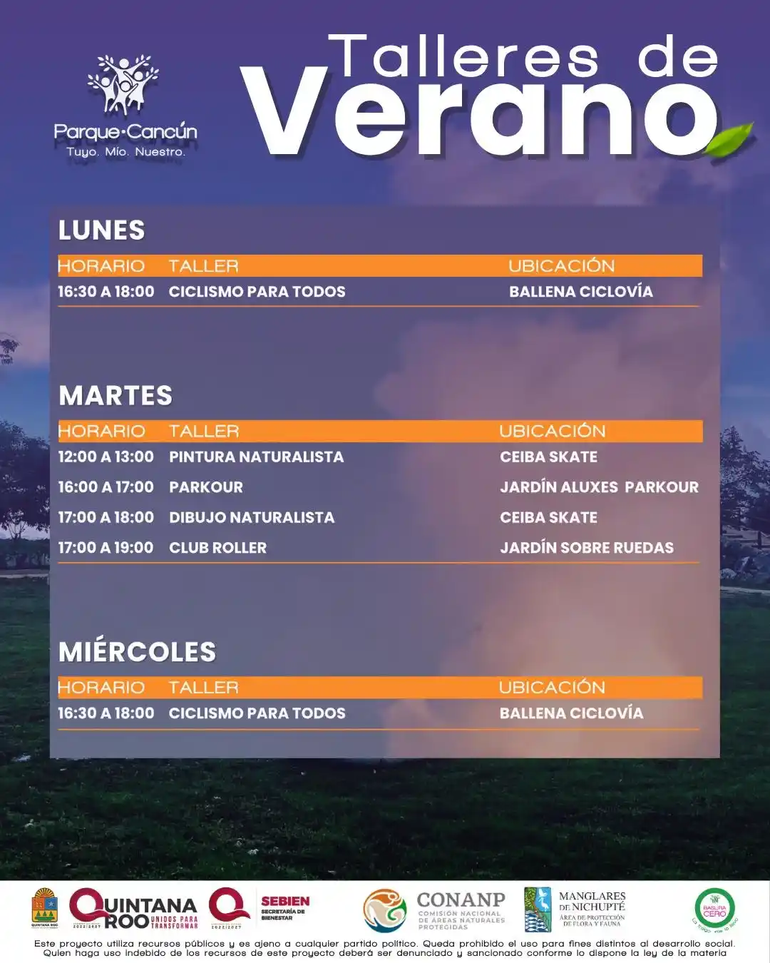 Talleres de Verano en Parque Cancún 2025 – Horarios y Transporte Gratis 🚍🌿